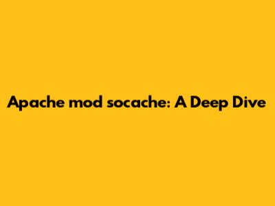 Apache Mod_socache: A Deep Dive