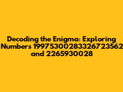Decoding The Enigma: Exploring Numbers 19975300283326723562 And 2265930028