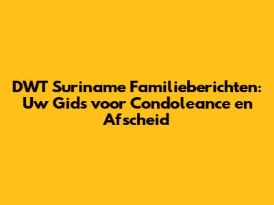 DWT Suriname Familieberichten: Condoleance, Overlijdens En Begrafenis Informatie