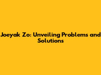 Joeyak Zo: Unveiling Problems And Solutions