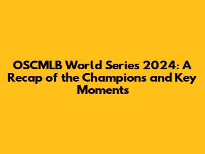 OSCMLB World Series 2024: Results And Analysis