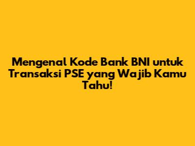 Panduan Lengkap Kode Bank BNI Untuk Transaksi PSE