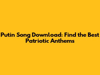 Putin Song Download: Find The Best Patriotic Anthems
