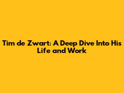 Tim De Zwart: A Deep Dive Into His Life And Work