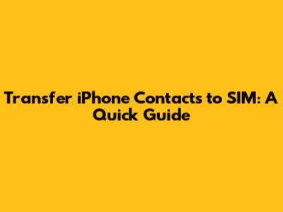 Transfer IPhone Contacts To SIM: A Quick Guide