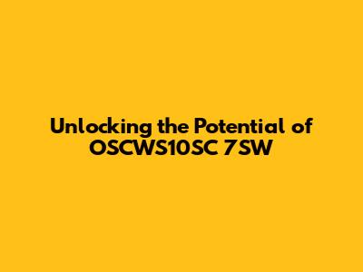Unlocking The Potential Of OSCWS10SC 7SW