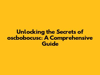 Unlocking The Secrets Of Oscbobocusc: A Comprehensive Guide
