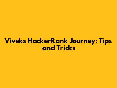 Vivek's HackerRank Journey: Tips And Tricks